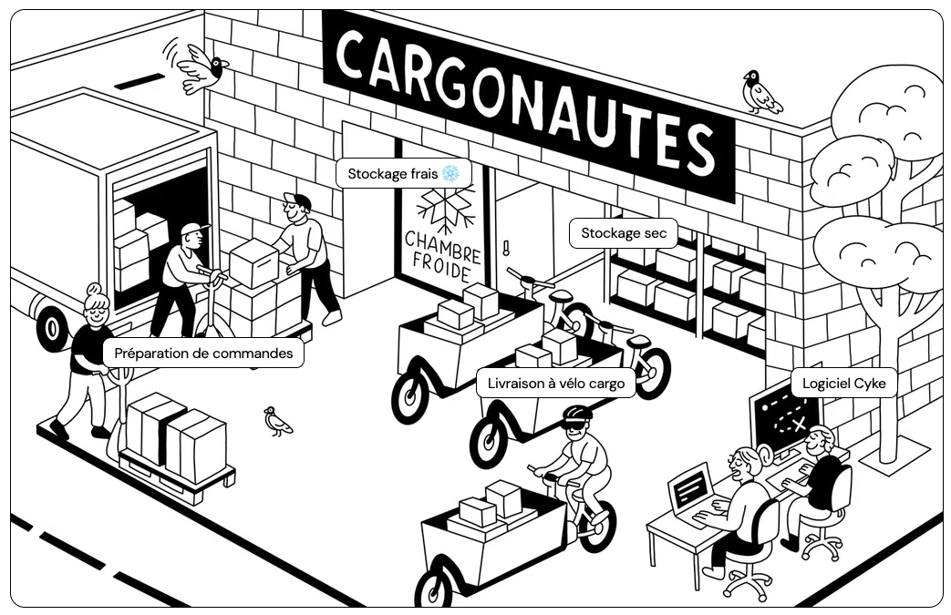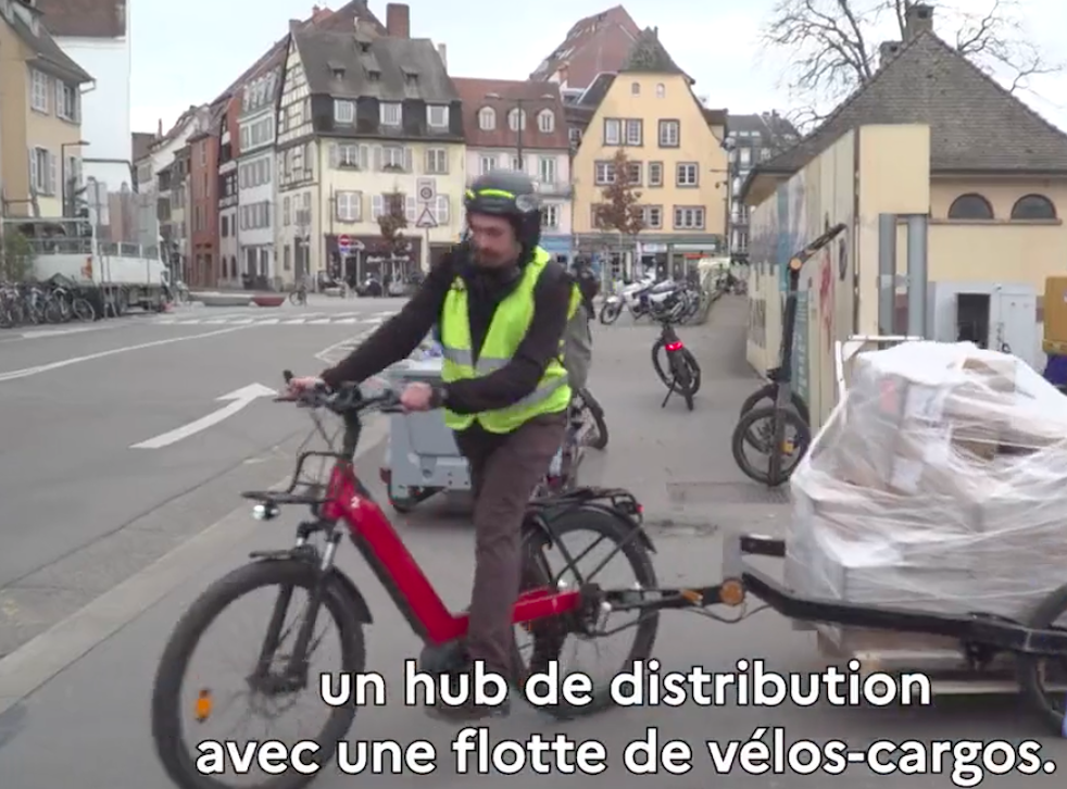 Mais le transport de marchandises ne concerne pas que les longues distances : la proximité est également concernée. Renault fabrique et commercialise ainsi des véhicules utilitaires légers – Kangoo, Trafic et Master – qui circulent sans émettre ni bruits ni de gaz d’échappement. Cependant, pour le dernier kilomètre, un autre moyen de transport creuse lentement et sûrement son sillon : le vélo cargo. Urban Logistics Solutions (ULS), un dispositif logistique déployé à Strasbourg et à Lyon – et soutenu par Haropa, qui réunit les ports du Havre, de Rouen et de Paris –, prouve ainsi qu’il est tout à fait possible de remplacer camions et fourgonnettes pour effectuer les livraisons en ville. Chaque vélo cargo, généralement à assistance électrique, peut transporter 100-150 kg de marchandises. Préalablement acheminées par voie d’eau, elles sont ensuite livrées rapidement aux clients, en l’occurrence aux commerces et aux entreprises. En ville, ces vélos utilitaires permettent de réduire les temps et les coûts de livraison, les bouchons, le bruit et la pollution. Ce mode de transport procure également des emplois, car s’il ne faut qu’un seul conducteur en camion pour faire une « tournée » et livrer successivement les clients, plusieurs cargo-cyclistes peuvent livrer simultanément plusieurs points de livraison.